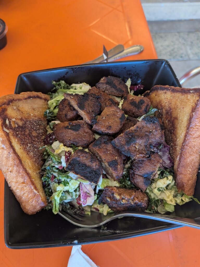 Dangerous Minds Brewing – A brewery that offers a few vegan pizza options including a BBQ jackfruit. They actually have a vegan menu listed on their website which is wonderful. The pizza uses Violife cheese and they even serve a vegan bread sticks option called Just The Crust. It was a great first dinner spot to have some good beer and good pizza.