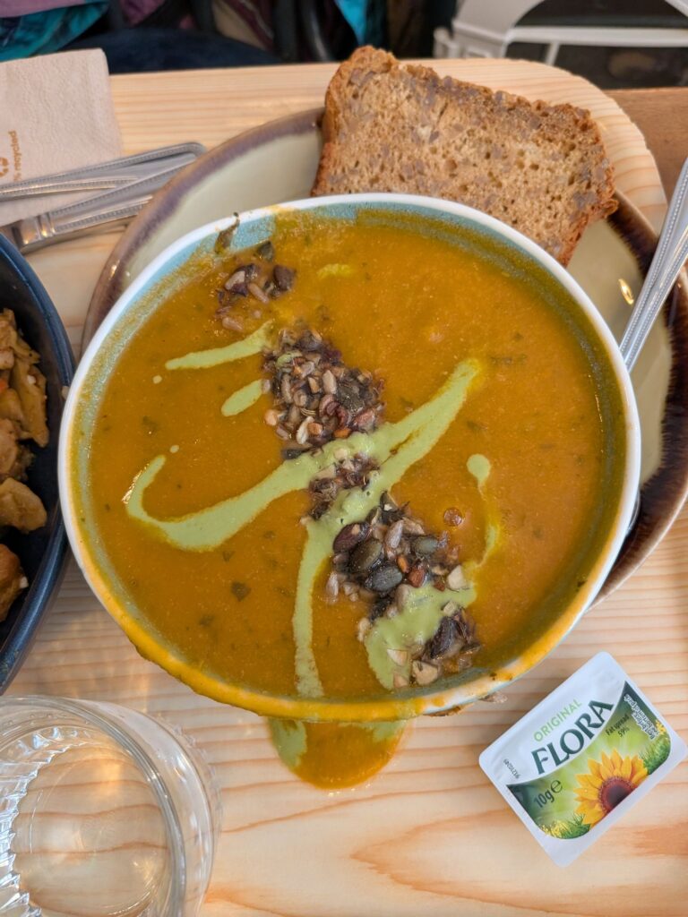 When asked if everything was vegan, we were told everything is vegan, but they still offer Irish butter and milk upon request. The default for all the food is vegan, but apparently the non-vegan Irish would revolt if they did away with those. If it keeps them in business offering amazing vegan homestyle delicious food, it’s hard to complain. They are located in a fantastic location and were consistently busy when we visited.